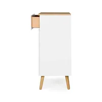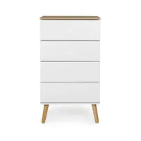 Põhjamaine kummut Dot on oma olemuselt harmooniline kooskõla ülimast lihtsusest, stiilsusest ning hubasusest. See kummut võlub tagasihoidliku valge värviga, mida täiustab tammespooniga pealisplaat, mistõttu sobib see mitmesuguste sisekujunduslahendustega. Neutraalset kummutit on lihtne sobitada ruumi muu mööbliga, sest selle viimistlus lähtub rusikareeglist "Vähem on rohkem".