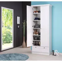 Riiulitega kapp Landwood on valmistatud kvaliteetsest ning vastupidavast mööbliplaadist ning MDF-plaadist. Kapp on mahukas ja mitmeotstarbeline - kahe ukse taga on kuus riiulivahet jalanõude, puhastusvahendite, mänguasjade ning muude esemete paigutamiseks. Riiulite vahed on reguleeritava kõrgusega. Kapi alumises osas on metallsiinidel liikuv lai sahtel. Kapi käepidemed on kergesti haaratavad ning valmistatud metallist.