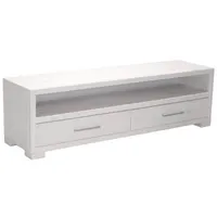 TV-alusel on kaks sahtlit ja üks avatud riiul terve aluse ulatuses. TV kapp on valmistatud kvaliteetsest männipuidust. Viimistletud õrnalt valge vahalakiga. Puidutekstuur kumab hästi viimistluse alt läbi. Käepidemed metallist. Kaal 30 kg.