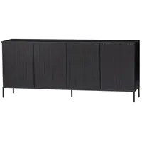 Kapi vastupidavuse tagavad hoolikalt valitud materjalid. Kapp on valmistatud männipuidust ning viimistletud sügavmusta lakiga. Neli ust on igaüks 66 cm kõrge, 50 cm lai ja 2 cm paksune. Puhvetkapil on neli eemaldatavat riiulit, mis on ka reguleeritava kõrgusega. Metallist jalad on 15 cm kõrged ja läbimõõduga 2 cm.