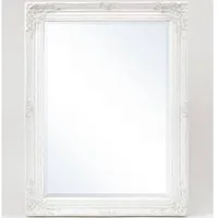Kaunite valgete äärtega kaunistatud peegel täiendab interjööri. Antiikse hõnguga peegel mõjub luksuslikult ning on ruumis lisaks oma eesmärgile ka illustratiivses rollis. Vintage valge toon on rahulik ning ajas kestev.