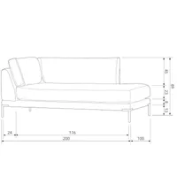 Nurga elemendi istumiskõrgus on 44 cm, istumisügavus 157 cm ja istumislaius 57 cm. Jalad on metallist, mustas toonis, kõrgus on 13, läbimõõt 2.5 cm. Maksimaalne kandevõime ühel osal on 90 kg. See on kaetud vastupidava kangaga, kootud šenillniidiga kangas on valmistatud 100% polüestrist ja sellel on ühtlane kompaktne koemuster. Kootud kangas sobib väga intensiivseks koduseks kasutamiseks koos Martindale 100 000-ga, mis sobib ideaalselt laste ja/või lemmikloomadega majapidamistesse.