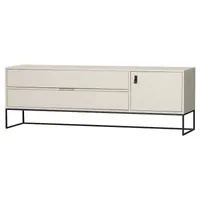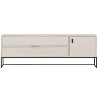 Tv-alus on valmistatud FSC sertifitseeritud männipuidust. Kapi tooni on lihvitud,seega looduslik pind kumab läbi ning mööbel on looduslähedase stiiliga. Tv-aluse raam on valmistatud metallist. Kapil on kaks sahtlit ning üks kapi osa. Ukse taga on üks vaheriiul. Toote kandevõime ühtlase jaotuse korral on kuni 35 kg.