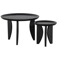 Lauad on valmistatud mangopuidust ja kaetud läikivmusta kattega. Mangopuit on väga tugev ja üks kõvematest puitudest. Väikese laua kõrgus on 40 cm ja seetõttu saab selle mänguliseks kombinatsiooniks osaliselt suurema alla panna. Lauaplaadi läbimõõt on 40 cm. Suure laua kõrgus on 47 cm, läbimõõt on 70 cm. Mõlemad lauaplaadid on 4-5 cm paksused ja ülaosast 2 cm kitsenevad.