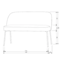 Diivani raam ja jalad on valmistatud vastupidavast metallist ning viimistletud musta tooniga. Pink-diivan on mõeldud kasutamiseks söögilaua taga, pakkudes seal mugavat istet. Samuti sobib see suurepäraselt esikusse, luues kutsuva ja stiilse atmosfääri. Kaetud on diivan sametise polüestriga. Rikkalikul Ferra sametil on silmatorkav struktuur, mis annab sellele luksusliku välimuse ja erilise sära. Pehme kangas on valmistatud 100% polüestrist, mis teeb hooldamise väga lihtsaks. Diivani istumiskõrgus on 50 cm, istumislaius 120 cm ja istumissügavus 45 cm. Diivani jalad on 40 cm kõrgused.