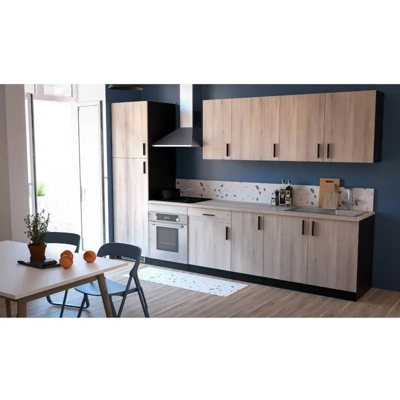Ühe uksega ülemine köögikapp on valmistatud kvaliteetsest melamiinkattega mööbliplaadist, mis on niiskus- ja kriimustuskindel. Kapp on osaliselt kronbergi tamme imitatsioonis ning mustas toonis. Kapi ukse taga üks muudetava kõrgusega vaheriiul.