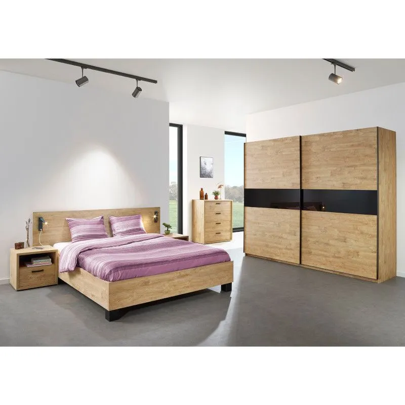 Kogu sarja mööbel on valmistatud mööbliplaadist, kuldse tamme imitatsiooniga. Voodile sobivad madrats(id) ja raamiga voodipõhjad (2tk. 80x200), tuleb soetada eraldi. Voodi peatsi küljes olev valgusti kuulub komplekti, selle küljes on ka USB pesa.