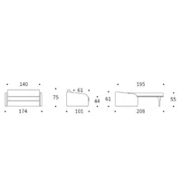 See, kas eelistate pehmet või tugevat madratsit, on teie otsustada, sest üks külg tagab pehme 4 cm Öko-sertifikaadi mäluvahu mugavuse ja teine külg koosneb 8 cm paksusest poroloonist, mis pakub tugevamat mugavust. Diivanil on eemaldatav ja pestav madratsikate, mis muudab selle puhastamise ja mustusevaba hoidmise lihtsaks. Maksimaalne kandevõime on 330 kg. Diivani istme sügavus on 61 cm, istme kõrgus 44 cm, käetoe kõrgus 61 cm. Diivani mõõdud lahtisena on 140x195 cm, madratsi kõrgus on 11 cm. Põranda ja diivani vaheline kõrgus on 3 cm.