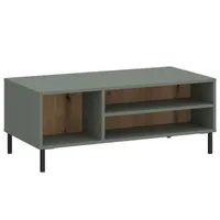 Diivanilaud on valmistatud salveirohelises toonis lamineeritud puitlaastplaadist. Kõrgetele metalljalgadel diivanilaud näeb elegantne välja ja tagab samas suure mahutavuse erineva laiusega riiulitel.