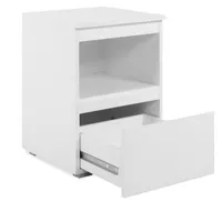 Valmistatud kvaliteetsest mööbliplaadist. Öökapil on üks metallsiinidel sahtel ning selle kohal avatud osa. Plastikust jalad.