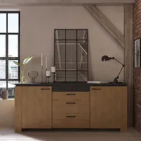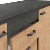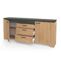 Puhvetkummut on valmistatud melamiinkattega mööbliplaadist, mis on vastupidav ning ajas kestev. Sellel on kolm sahtlit ning kas ust. Uste taga 1 reguleeritav vaheriiul.