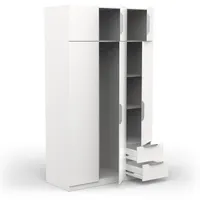 Riidekapp on valmistatud mööbliplaadist. Kapp on mahukas, paremal pool ukse taga on kaks vaheriiulit, vasakul pool uste taga üks vaheriiul ning riidepuutoru. Nende kohal kolme ukse taga samuti hoiuruum. Alumises osas kaks sahtlit.