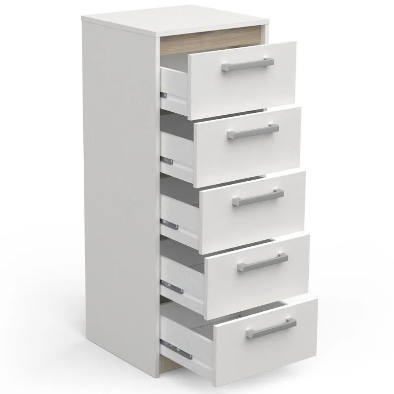 Kogu sarja mööbel on valmistatud mööbliplaadist ning on saadaval erinevates viimistlustes. Kummut on varustatud viie sahtliga, mis pakuvad rohkelt hoiuruumi. Käepidemed lakitud plastikust.