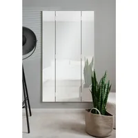 Tänu oma suurusele aitab see peegel ruumi visuaalselt avardada, hoiab üldmulje korras ning lisab interjöörile rahulikku ja läbimõeldud elegantsi. Peegli laius avatuna 91 cm, suletuna 45 cm. Peegli korpus on valge, valmistatud melamiinkattega mööbliplaadist.