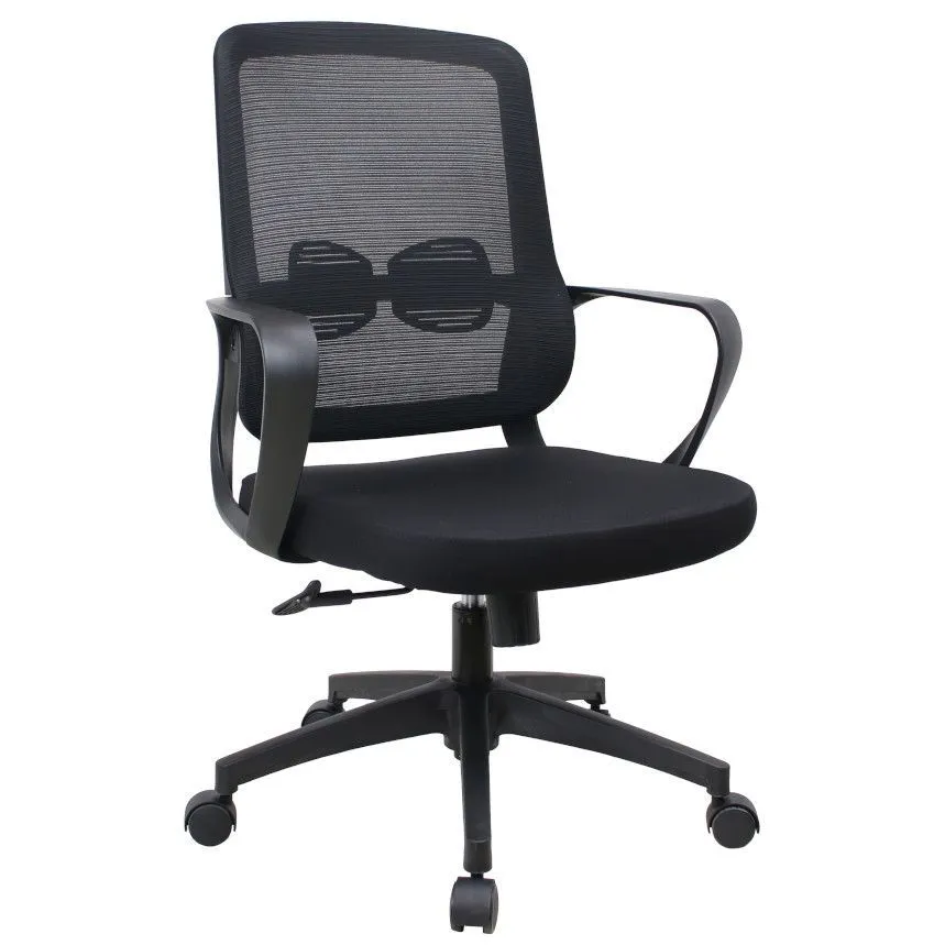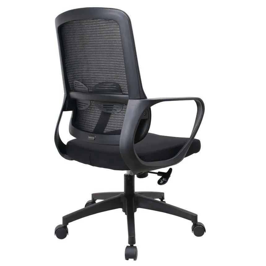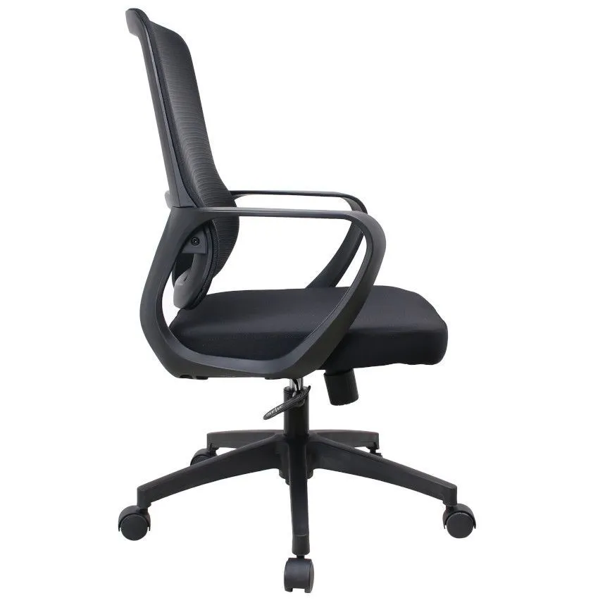 Klassikaliselt mugav kontoritool, mis sobib ideaalselt igasse töökeskkonda. Tooli must toon lisab elegantsi, samas kui võrkmaterjalist seljatugi tagab hea õhuliikuvuse ja kangast iste pakub mugavat istumist ka pikemate tööpäevade jooksul. Fikseeritud mustad käetoed toetavad käsivarsi ning aitavad hoida õiget kehahoiakut.