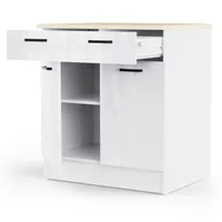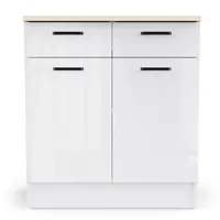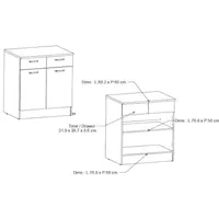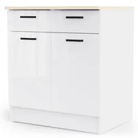Kahe ukse ja sahtliga alumine köögikapp on valmistatud kvaliteetsest melamiinkattega mööbliplaadist, mis on niiskus- ja kriimustuskindel. Pealmine plaat tamme imitatsioonis ning ustel ning sahtlitel valge kõrgläige. Kapi uste taga üks muudetava kõrgusega vaheriiul. Sahtel liigub metallsiinidel.