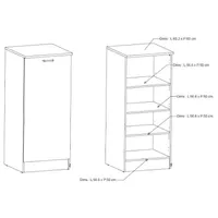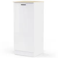 Ühe uksega alumine köögikapp on valmistatud kvaliteetsest melamiinkattega mööbliplaadist, mis on niiskus- ja kriimustuskindel. Pealmine plaat tamme imitatsioonis ning uksel valge kõrgläige. Kapi ukse taga kolm muudetava kõrgusega vaheriiulit.