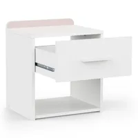 Kogu sarja mööbel on valmistatud mööbliplaadist. Öökapil on üks metallsiinidel liikuv sahtel ning selle all avatud osa. Öökapi värviline detail on kahepoolse viimistlusega, mis võimaldab paigaldamisel valida esiküljele endale sobiva tooni – kas öösinise või vanaroosa.