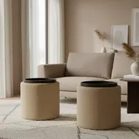 Tumba sisse peitub avar hoiuruum, kuhu saab kenasti paigutada pleede, ajakirju või muid vajalikke esemeid, hoides eluruumi korras ja harmoonilisena. Kaunis vorm ja hoolikalt valitud toonid muudavad selle vastupandamatuks nii lisaistekohana kui ka pehme jalatoena lõõgastushetkedel.