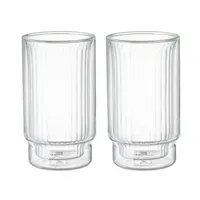 Stiilne joogiklaas läbipaistvast, kaunilt soontega klaasist. Sobib nii igapäevaseks kui ka pidulikuks lauakujunduseks. Mahutavus 30 cl. 2 tk pakendis. Soovitatav on käsitsi pesemine.