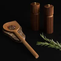 Akaatsiast soola/pipra veski ühendab loodusliku ilu ja usaldusväärse funktsionaalsuse. Kaunilt sooneline pind annab igale köögile sooja ja kvaliteetse ilme. Vastupidav reguleeritav keraamiline mehhanism sobib nii pipra kui ka jämeda soola jahvatamiseks. Pärast kasutamist peske käsitsi ja kuivatage puhta lapiga. Pikema eluea nimel hooldage puitu aeg-ajalt taimeõliga.