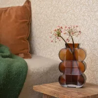 Fanni K Kaivo vaas on elegantne sisustuselement, mis ühendab endas modernse stiili ja käsitöö ainulaadsuse. Pruunist poolläbipaistvast klaasist valmistatud vaasi kaunistab peen muster, mis mängib kaunilt valguse ja varjuga.