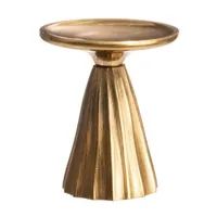 Fanni K kuldne küünlajalg on silmatorkav aksessuaar, mis lisab interjöörile soojust ja elegantsi. Ümar ja lame ülaosa tagab küünlale stabiilse aluse, samas kui ülespoole kitsenev korpus ja vertikaalsed sooned rõhutavad küünlajala dekoratiivset ja stiilset disaini.