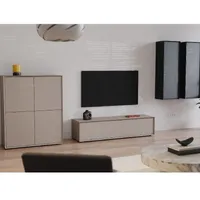 Kogu sarja mööbel on valmistatud mööbliplaadist. Tv-alus on viimistletud elegantse Šveitsi servaga ning selle käepidemeteta push -to-open mehhanism tagab sujuva avamise. Komplekti kuuluvad nii seinale kinnitamise tarvikud kui ka tavalised lamedad plastjalad. Tagaseinas asuvad 3 kaabliava juhtmete korrastamiseks. Üks alla suunda avanev klappuks gaasvedruga ning sisemine vahesein võimaldavad sisemuse mugavat jaotust.