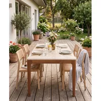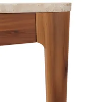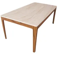 Stiilne söögilaud, mis sobib nii sise- kui ka välistingimustesse. Laud on valmistatud FSC 100% sertifikaadiga akaatsiapuidust, mis on vastupidav ja tugev puiduliik ning paistab silma kauni ja elava puidusüüga. FSC-sertifikaat kinnitab, et puit pärineb vastutustundlikult majandatud metsadest. Lauaplaat on valmistatud betoonist ning viimistletud travertiini välimusega pinnaga, mis annab lauale elegantse looduskivi ilme. Maksimaalne kandevõime kuni 40 kg.