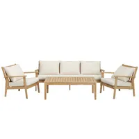 See stiilne komplekt sisaldab kahte tooli, diivanit ja lauda, mis on ideaalne nii tubase interjööri jaoks kui ka välitingimuste jaoks. Tooli mõõdud cm, laua mõõdud: cm. Komplekt on valmistatud vastupidavatest materjalidest- mööbli raam on valmistatud FSC akaatsiapuidust ning istmeosad ning padjad on kaetud kvaliteetse kangaga. Komplekt ühendab vastupidavuse ja modernse disaini, pakkudes mugavust ja stiili.