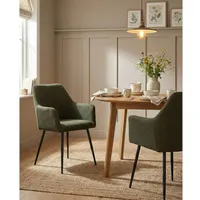 Sizzy roheline söögitool paistab silma oma klassikalise ja ajatu ilmega. Pehme roheline kangas on meeldiv ning lisab toolile värsket ja luksuslikku iseloomu. Ümarad jalad loovad harmoonilise kontrasti, tuues esile tooli elegantse vormi ja tasakaalustatud välimuse.