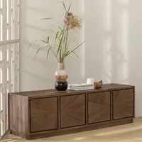 Sun televiisorikapp on valmistatud taaskasutatud tiikpuust – troopilisest ja vastupidavast lehtpuuliigist, mis on tuntud oma tumedapruuni kuni punaka tooni ning sirge kiu poolest. See kombinatsioon annab mööbliesemele eriliselt luksusliku välimuse ja pikaealisuse.