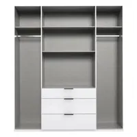 Kogu sarja mööbel on valmistatud kvaliteetsest mööbliplaadist. Kapp pakub mugavat hoiuruumi. Kapp on jaotatud kolmeks osaks, mõlemal pool ääres ülemises osas üks vaheriiul ning riidepuutoru. Keskel kaks vaheriiulit ning alumises osas kolm sahtlit. Käepidemed mustas toonis.