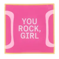 Lisa oma hommikutesse killuke rõõmu selle armsa roosa taldrikuga, millel ilutseb mänguline kiri „You Rock Girl“. Kaunis roosa toon koos õrna kuldse servaga loob pilkupüüdva ja elegantse koosluse, mis toob lauale nii värvi kui ka head tuju.