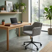 Kaasaegne ja mugav töötool ühendab endas pehme istumismugavuse ning praktilise funktsionaalsuse. Ümarate joontega seljatugi ja käetoed loovad hubase ning toetava istumiskogemuse, sobides ideaalselt nii kodukontorisse kui ka tööruumi.
