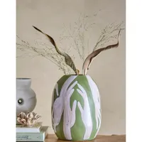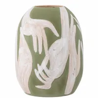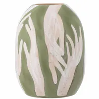 Bloomingville Adalena vaas on kunstipärane ja pilkupüüdev oma värske rohelise värvi ja käsitsi maalitud tantsivate käte motiiviga. Dekoratiivne vaas on peen ja elegantne sisustuselement, mis toob ruumi isikupära.