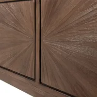 Sun televiisorikapp on valmistatud taaskasutatud tiikpuust – troopilisest ja vastupidavast lehtpuuliigist, mis on tuntud oma tumedapruuni kuni punaka tooni ning sirge kiu poolest. See kombinatsioon annab mööbliesemele eriliselt luksusliku välimuse ja pikaealisuse.
