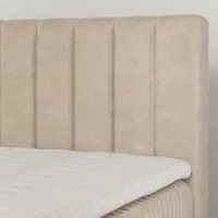 Kontinentaalvoodi toetub 22 cm kõrgusele alusraamile, mille südames on 5 tsooniga pocket-vedrustus. Konstruktsioon püsib stabiilne ning reageerib kehale pehmelt, säilitades samal ajal kindla tugevuse. Pealmise kihina on kasutatud 21 cm pocket-madratsit, mis tugineb 7 tsooniga vedrustusel. 1.4 mm vedrud, kokku muljet avaldavad 460 vedru/m², tagavad täpse kehakontuuri järgimise ja veelgi peenema surve jaotuse. Selline ülesehitus loob voodile üldiselt selgelt keskmise jäikusega tunde, mis sobib suurepäraselt neile, kes soovivad tasakaalu mugavuse ja kindla toe vahel. Voodit täiustavad tammepuidust jalad Müügisaalis saab tellida ka mustade jalgadega. Mõlemad variandid annavad voodile elegantse lõppviimistluse ja lisavad konstruktsioonile visuaalset tugevust.