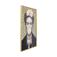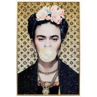 Tõeline meistriteos moodsa kunsti austajatele – see musta ja kuldse raamiga klaaspilt on oma ikoonilise naismotiiviga võimas avaldumisvorm. Frida Kahlo stiliseeritud kujutis ühendab endas kaasaegse glamuuri ekstravagantsuse hõnguga. Õrnad kivid ja kuldne raam annavad kunstiteosele klassi hõngu. See sobib ideaalselt minimalistliku mööbliga või on ekstravagantne lisa glamuursele interjöörile, tuues igasse ruumi erksad värvid ja väga erilise aura.