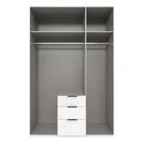 Kogu sarja mööbel on valmistatud kvaliteetsest mööbliplaadist. Kapp pakub mugavat hoiuruumi, kapp on jaotatud kaheks osaks, mõlemal pool ääres ülemises osas üks riidepuutoru ning riiul, keskel kolm metallsiinidel liikuvat sahtlit Käepidemed mustas toonis.