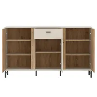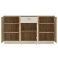 Kogu sarja mööbel on valmistatud lamineeritud mööbliplaadist, soonelised detailid MDFist. Pehme kašmiirist pind loob rahuliku ja sooja tunde dekoratiivsetele elementidele või raamatule samas kui vertikaalsete soontega küljed lisavad väljendusrikkust ja tekstuuri. Sõltuvalt eelistustest saate selle asetada peenikestele metalljalgadele (jalad 12 cm, kogukõrgus 87 cm) või paigaldada täissoklile (kogukõrgus 82.5 cm) – mõlemad valikud on komplektis. Sahtlitel ning ustel soft-close süsteem, mis tagab sujuva ja vaikse sulgemise.