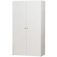 Mahukas kaheukseline riidekapp on valmistatud FSC-sertifitseeritud männipuidust ja HDF-materjalist ning viimistletud neutraalses valges toonis. Kapi standardlahendus sisaldab ühte ülemist riiulit ja riidepuutoru, mis sobib ideaalselt riiete organiseerimiseks. Soovi korral on võimalik lisada kolm vaheriiulit, et luua rohkem tasapinnalist hoiuruumi. Kapi tagasein on valgest HDF-ist ning männipuidule omane tekstuur annab mööblile naturaalse ja vastupidava iseloomu. Riiuli ja riidepuutoru kandevõime on kuni 10 kg. Üle 50 cm pikkuste kappide puhul soovitame pöörata erilist tähelepanu seinale kinnitamisele. Kukkumisvastane kinnitus hoiab ära õnnetused ja hoiab ära kapi ümberkukkumise.