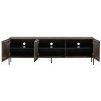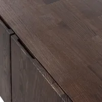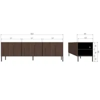 Kolme kapiukse taga on ruumikas hoiuala, mis on nutikalt jagatud riiulitega, võimaldades hoida korras meediaseadmeid, aksessuaare ja muid vajalikke esemeid. Saarepuidu naturaalsed toonid ja erinevad puidusüüd teevad iga kapi ainulaadseks. Tagaseinas mugavad avad juhtmete jaoks.