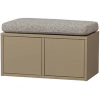 Kapi sisemus on valmistatud vastupidavast puitlaastplaadist, ülejäänud korpus FSC-sertifitseeritud männipuidust. Pinda on töödeldud nii, et puidu tekstuur ning välimus jääb läbi kumama. Kapid on universaalse disainiga ning sobivad kasutamiseks erinevates ruumides – elutoas, magamistoas, esikus või kodukontoris. Komplektis mugav istmepadi, mille kate on eemaldatav. Padja kõrgus 8 cm. Kangas on valmistatud 94% polüestrist ja 6% nailonist. Pealmise osa kandevõime kuni 100 kg.
