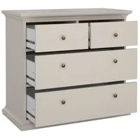 Kummuti muudab eriliseks selle pealisplaadile ja alusplaadile ning kummuti ustele süvistatud dekoratiivsed kaunistusjooned. Kummut on valmistatud kvaliteetsest mööbliplaadist ning sellel on kaks väikest ja kaks suurt metallsiinidel liikuvat sahtlit. Kummuti väikse sahtli kandevõime 4 kg ja suure sahtli kandevõime on 9 kg. Kummuti pealmise plaadi kandevõime ühtlaselt jaotatud koormuse korral on 25 kg.