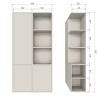 Kapp on valmistatud FSC-sertifitseeritud männipuidust ja kuulub Hollandi kaubamärgi WOOOD kollektsiooni. Paremal küljel paiknevad kolm avatud sektsiooni, mis sobivad ideaalselt lemmikaksessuaaride, raamatute või dekoratiivesemete esitlemiseks. Ustega taga olev ruum on privaatsem ning pakub mugavat hoiuruumi. Iga riiuli maksimaalne kandevõime on kuni 10 kg. Üle 50 cm kõrguse mööbli puhul on soovitatav pöörata erilist tähelepanu seinale kinnitamisele. Kukkumisvastaste kinnituste kasutamine aitab vältida õnnetusi ning tagab mööbli stabiilsuse ja turvalise kasutuse.