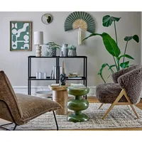 Seinakaunistust ilmestavad pehmed rohelised voldid, mis sulanduvad sujuvalt beežiks keskosaks, ning viimistluseks lisavad karakterit dekoratiivne tutt ja praktiline riputusaas. Kuna toode on valmistatud looduslikest materjalidest, võivad toonid ja detailid varieeruda – just see muudab iga Jaime seinakaunistuse ainulaadseks ning eriliseks sisustuselemendiks.