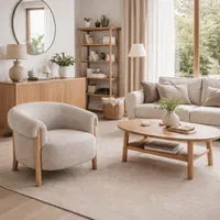 Tugitool Ditte paistab silma oma pehme ja voolujoonelise disainiga, mida täiendavad naturaalsest puidust jalad. Ümar seljatugi ja kergelt kaarduvad käetoed loovad ühtse ja hubase vormi, mis pakub mugavat istumiskohta ning lisab ruumile soojust ja iseloomu.