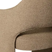 Tool on kaetud kauni buklee kangaga, mis lisab interjööri soojust ja tekstuuri. Mugavust toetab kvaliteetne vahtpolster, mis säilitab oma vormi ja pakub istumismugavust ka pikemate õhtusöökide või koosviibimiste ajal. Tugev terasraam annab toolile stabiilsuse ning samas hoiab üldmulje kerge ja elegantse. Tänu läbimõeldud konstruktsioonile sobib tool suurepäraselt nii söögilaua äärde kui ka modernsesse eluruumi aktsenditooliks. Tooli istme kõrgus on 47 cm, seljatoe kõrgus on 34,5 cm, pakkudes piisavat tuge seljale, säilitades samal ajal tooli kerge ja elegantse ilme. Istme laius on 49 cm ja istme sügavus 45,5 cm. Käetoe kõrgus on 63,5 cm.