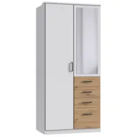 Kogu sarja mööbel on valmistatud kvaliteetsest mööbliplaadist ja saadaval erinevate viimistlustega. Kapp on nutikalt jaotatud kaheks, ülemises osas on riidepuutoru ja vaheriiul, paremal alumises osas neli sahtlit. Uksel olev peegel on praktiline ning lisab visuaalset avarust.